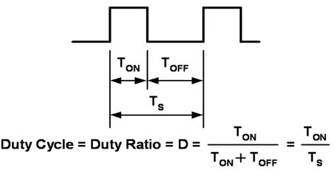 為LED提供脈波電流的方法也稱作PWM,這種方法已經(jīng)成為改變光等級的首選方法。LED本身是矽元件,對應(yīng)流經(jīng)它們的電流導(dǎo)通及關(guān)閉而快速地導(dǎo)通和關(guān)閉。開關(guān)時間在100奈秒(ns)等級,相當于最大頻率10MHz。應(yīng)用通常以100Hz~100kHz的頻率工作。頻率低于100Hz時,人眼會觀察到LED光閃爍。頻率在500Hz~20kHz之間時,電路可能產(chǎn)生能聽到的雜訊。調(diào)光是通過在單個開關(guān)周期的某部分時間內(nèi)將LED導(dǎo)通;而在此開關(guān)周期的其余部分時間內(nèi),將LED關(guān)閉來實現(xiàn)。這種導(dǎo)通關(guān)閉周期稱作工作周期(D),其表達方式為LED導(dǎo)通時間(TON)除以整個開關(guān)/導(dǎo)通周期時間(TS)(圖3)。