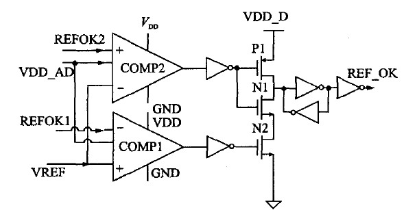 此外,本設計中還設置了一個REF-OK模塊來判斷上電后電源系統是否已進入正常工作狀態(tài)。