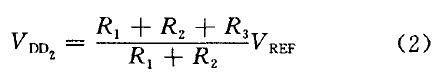 時,比較器跳轉,N1開通,UVLO-out開始變l.通過合理設置R1、R2、R3值就可以使VDD1=9.5 V,VDD2=7V,即VDD上升到9.5 V時UVLO輸出為零,芯片正常工作; VDD下降到7 V 時芯片停止工作。