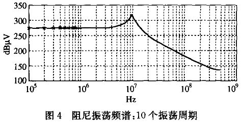 為了研究阻尼振蕩對電磁干擾的影響,本文同樣單獨對其進(jìn)行了研究,圖4為其頻譜,