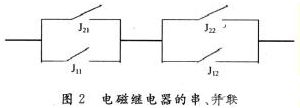 式中:Rt為并聯后的可靠度;R為每個繼電器的可靠度。觸點串聯能夠提高其負載電壓,提高的倍數為串聯觸點的組數。但使用時電壓不要高于線圈最大工作電壓,也不要低于額定工作電壓的90%,否則會危及線圈壽命和使用可靠性,如圖2所示。