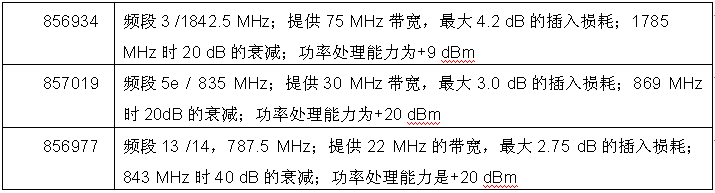 TriQuint公司的新型射頻聲表面波濾波器的技術細節速覽表