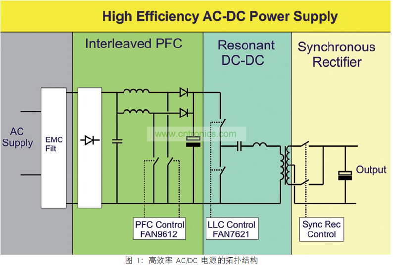 隨著“整個負載范圍內都保持超高的效率”這一要求成為產品規格的一部分,設計工程師在評審 AC/DC 電源拓撲時都將減少能耗作為具體的目標。 圖 1顯示了一個能提供一流效率的拓撲示例。 本文由 Future Electronics(EMEA) 公司的技術項目經理John Stephens 編著,應廣大 IC制造商的要求介紹了如何處理此拓撲中最后剩余的主要能耗部分:輸出整流階段。
