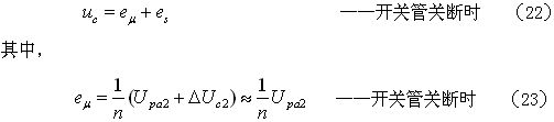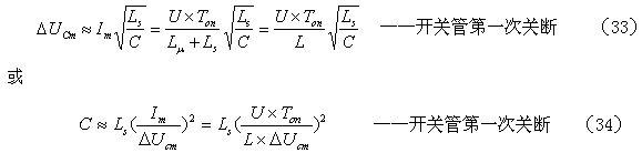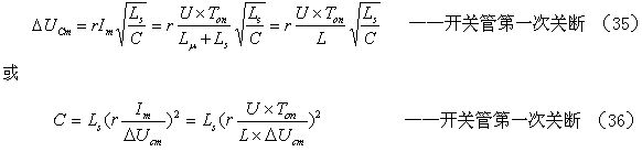 的值可根據(jù)(41)式求得。在使用(48)和(49)式之前,還需要先利用(33)和(34)式或(35)和(36)式計算出電容器C的容量,以及根據(jù)開關管的最大耐壓BVm定義好電容器C吸收尖峰脈沖電壓增量