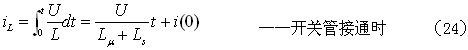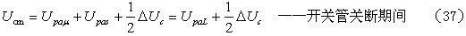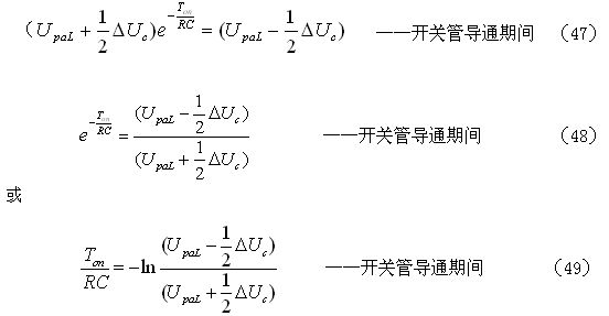 如果考慮電阻R對電容器C充電時的分流作用,以及開關管由導通到完全關斷期間漏極電流(逐步減小)對電容器C充電時的分流作用,則(33)和(34)式可以改寫為: