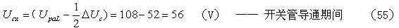 當考慮電阻R對電容器C充電的分流作用,以及開關管由導通到完全關斷期間,漏極電流對電容器C充電的分流作用時,根據(36)式,假設分流系數r = 0.5 ,則(52)式還可改寫為: