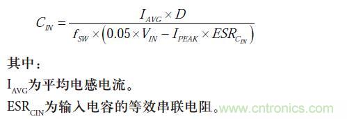 注意,輸入電流在反相降壓/升壓拓?fù)浣Y(jié)構(gòu)中也是非連續(xù)的。假設(shè)在接通時輸入電容的能量損耗所引起的輸入電壓偏差小于輸入電壓的5%,則通過下式可計算滿足此要求的最小輸入電容。