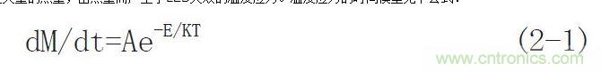 目前,主流的LED驅動是使用交變電源作為電源輸入的,對于一些大功率的LED驅動電路,其變壓線圈會產生大量的熱量,由熱量而產生了LED失效的溫度應力。溫度應力的時間模型見下公式: