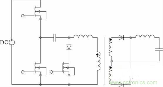 不對稱脈沖PWM 控制,其下管下降沿與上管的前沿互補(bǔ),上管可實現(xiàn)ZVS。只要設(shè)計的占空比較小,無需其它措施即使工作在較高頻率下開關(guān)損耗也很小。變壓器直流偏磁,除占空比端點外,偏磁電流小于不對稱半橋。寬范圍適用性優(yōu)于傳統(tǒng)的不對稱半橋。低壓大電流的應(yīng)用場合有一定的優(yōu)勢。