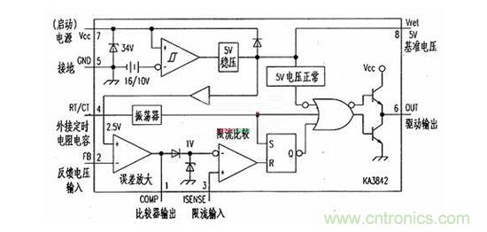 ⑥輸出端驅動能力是±1A。啟動電源端,啟動電壓低于16V,KA3842不工作