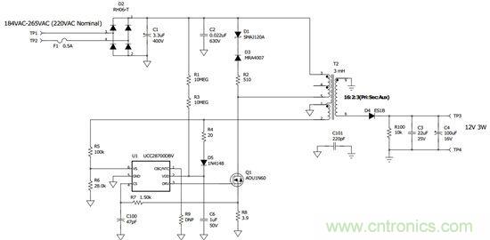 PMP9087 — 85VAC-265VAC 輸入、12V/200mA 無(wú)變壓器偏置電源