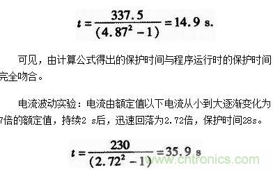 電流恒定實(shí)驗(yàn):設(shè)為實(shí)際恒定電流值,當(dāng)n=4.87倍時(shí),保護(hù)時(shí)間14 s。