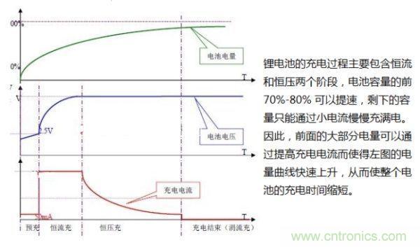 隨著對鋰電池容量的要求越來越高,鋰電池廠家也在加快新型電池的研發,額定充電電壓從傳統的4.2V提高到4.35V,目前又出現了4.4V充電電壓的鋰電池,容量進一步提高。而傳統的充電器輸出電壓為5V,充電控制電路會調節充電電壓和電流滿足鋰電池的充電特性。不同鋰電池的化學特性不同,因此充放電性能及安全性能也就不同,有的電池芯適合大電流充放電,而有些電池芯可以耐高電壓,所以,采用何種快速充電方式要取決于鋰電池芯的具體特性。提高充電器的輸出電壓可以在恒流階段提高充電功率,實現快速充電。