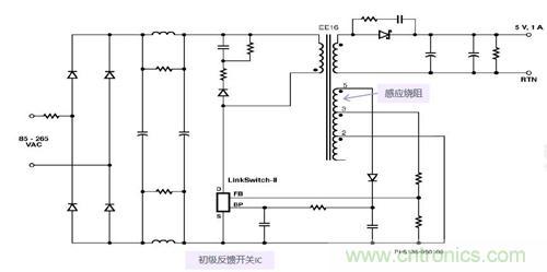 圖1b,初級反饋控制電路,無需光耦而直接通過繞組感應信號,簡化了電路
