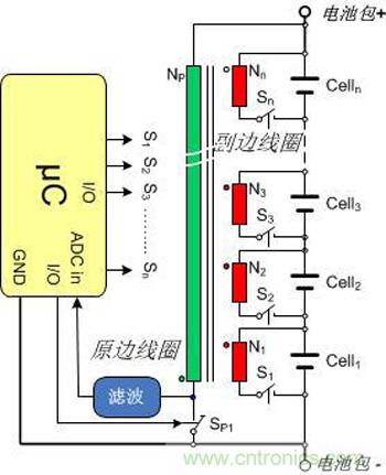 因?yàn)楸粍?dòng)均衡的局限,主動(dòng)均衡的概念得以提出并發(fā)展。主動(dòng)均衡是把高能量電池中的能量轉(zhuǎn)移到低能量電池中,相當(dāng)于對(duì)木板“截長(zhǎng)補(bǔ)短”。因?yàn)椴幌癖粍?dòng)均衡只有“截”,在如何“補(bǔ)”的問題上業(yè)內(nèi)充分發(fā)揮了各自的優(yōu)勢(shì)和想象力,主動(dòng)均衡的方案可謂異彩紛呈。除了飛度電容的方案(因?yàn)檫m用串?dāng)?shù)低,轉(zhuǎn)移有局限性而未能成為主流),還有變壓器的方案,變壓器方案中又有各種拓?fù)浣Y(jié)構(gòu)。半導(dǎo)體廠家也設(shè)計(jì)了電池專用的DCDC轉(zhuǎn)換芯片,命名為主動(dòng)均衡控制芯片來推向市場(chǎng),顯然是不想錯(cuò)過這班車。