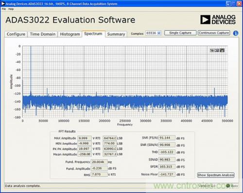 圖5. 使用EVAL-CED1Z評估板和軟件的ADAS3022 FFT輸出