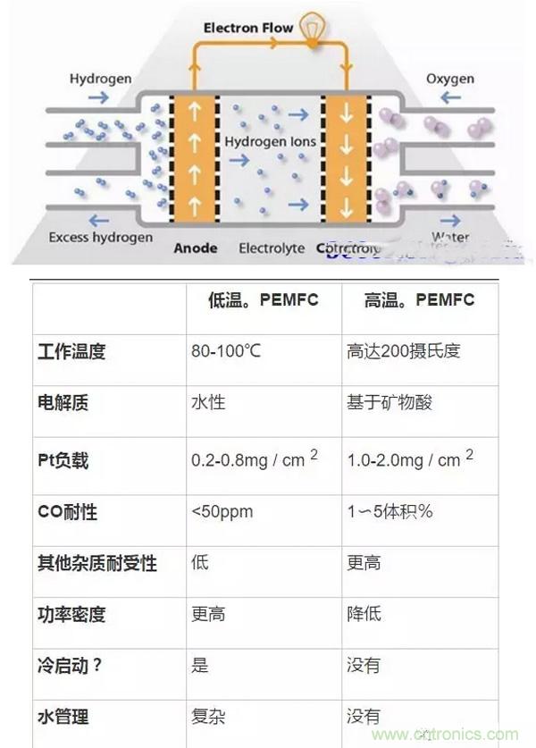 HTPEMFCs不優(yōu)于低溫PEMFC;兩種技術(shù)都在其優(yōu)勢所在的地方找到了利基。下表總結(jié)了兩種PEMFC變量之間的差異: