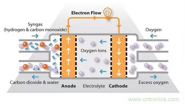 SOFC使用固體陶瓷電解質(zhì),例如用氧化釔穩(wěn)定的氧化鋯,而不是液體或膜。它們的高工作溫度意味著燃料可以在燃料電池本身內(nèi)重整,消除了對外部重整的需要,并允許單元與各種烴燃料一起使用。與其它類型的燃料電池相比,它們還相對耐燃料中的少量硫,因此可以與煤氣一起使用。