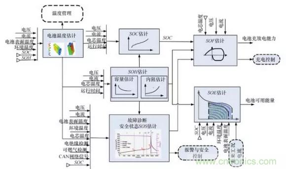 (2)電池狀態估計。包括荷電狀態(SOC)或放電深度(DOD)、健康狀態(SOH)、功能狀態(SOF)、能量狀態(SOE)、故障及安全狀態(SOS)等;