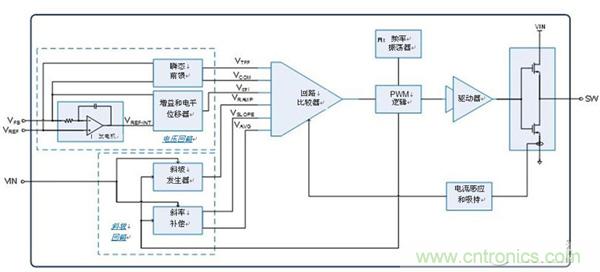 2.斜坡回路根據VIN和PWM信號生成斜坡電壓。經優化的斜坡補償值僅為下降斜率斜坡電壓的一半。