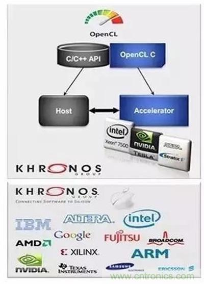 OpenCL標準是第一個開放、免版稅、統一的編程模型,能夠在異構系統上加速算法實現,支持使用基于C的編程語言進行跨平臺開發 ,例如CPU、GPU、DSP和FPGA。支持OpenCL的異構系統一般通過PCle總線實現主機與硬件加速器(或者一個內核與另一個沒有主機控制的內核)之間的通信,而這一切并不需要程序開發者的關注。相反,開發者只需了解OpenCL定義的標準化的應用程序接口(API)。如今,各個主流的深度學習框架都提供OpenCL的支持。英特爾正計劃推出基于FPGA的CNN的多種網絡實現。