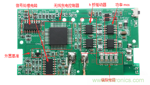 這種SoC方案下,PCB上只有一顆大芯片,和兩個MOS管,相當簡潔。SOC內(nèi)部集成了無線充電驅(qū)動,H橋驅(qū)動器,運放,內(nèi)置溫度保護功能等,一顆芯片實現(xiàn)所有功能,可有效控制成本和精簡生產(chǎn)流程。