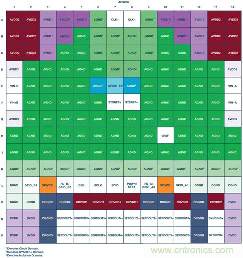 表2:AD9208電源域和接地域