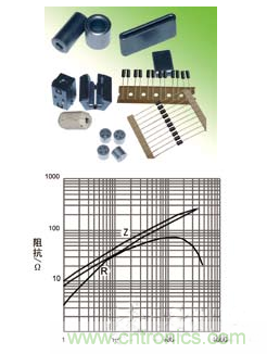 EMI抑制鐵氧體鐵氧體隨頻率變化的阻抗分量