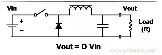 ■輸出電壓為輸入電壓乘以開關(guān)的負荷比 (D)。