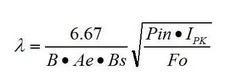 ●可由此大致判斷(λ=1)磁芯是否合適。高效率的設計要求磁應力不能太緊張,也就是變壓器(包括繞組和磁芯)的發熱不要成為整個電源最突出的。當熱應力突出時,應增加磁芯的 Ae.B 或者使用更好的材質。