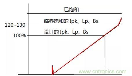 優化方向是Bs值最優化,約束條件是磁芯品質,可按 Bs(或原邊電感量 Lp)擴大20%~30%余量后 Ipk 波形可見臨界飽和跡象為判據確定Bs取值。更高的Bs取值,對應更小的氣隙、更小的漏感,更小的尖峰電壓、可能更高的整機效率。但太高的Bs取值會使上述余量更小、磁芯的品質控制困難、成品率降低。