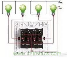 三控開關原理接線示意圖