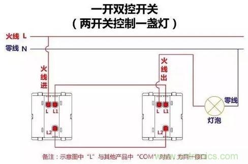 雙控開關示接線意圖