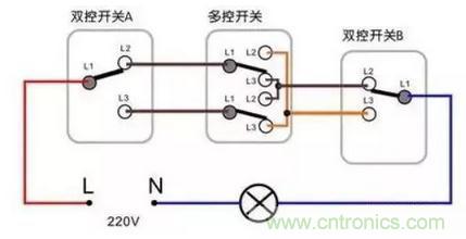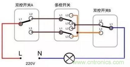 三控開關接線示意圖