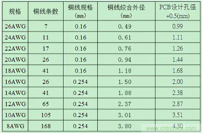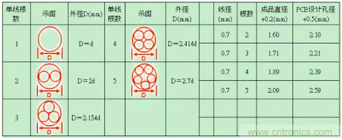 多根飛線直徑計算參考如下表格:
