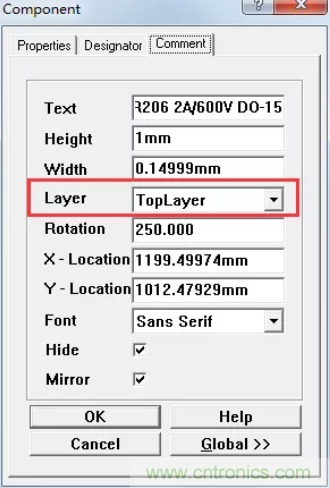 D1這個元件有個文字描述的屬性放在了頂層銅箔,如圖