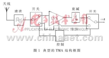 很多情況下,因為基站與移動設備不平衡連接的緣故,從基站到移動設備的信號強度和傳輸距離都要超過移動設備向基站的反向傳輸,并且由于天線與基站間的反饋損耗,使得這種不平衡性變得更大。為了改善這種不平衡性,擴大基站接收的覆蓋面,最直接的解決方案是加裝塔裝放大器TMA或Masthead放大器。而TMA中最重要的模塊LNA(如圖1所示)對接收的信號具有選頻功能,并把選頻后的信號進行低噪聲放大,使系統靈敏度增強,覆蓋半徑增大。
