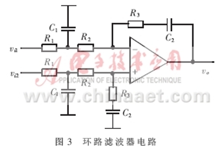 環(huán)路濾波器設(shè)計(jì)——環(huán)路濾波器形式和參數(shù)的選取是整個鎖相環(huán)電路設(shè)計(jì)與調(diào)試的關(guān)鍵。在壓控振蕩器和檢相器設(shè)計(jì)確定的情況下,環(huán)路濾波器的傳輸函數(shù)直接決定了整個環(huán)路的傳輸函數(shù),從而在很大程度上決定環(huán)路的噪聲性能、捕獲和跟蹤性能等。在鎖相環(huán)路設(shè)計(jì)中廣泛采用由有源比例積分濾波器組成的高增益二階環(huán)路,因?yàn)檫@種環(huán)路具有無條件穩(wěn)定性,而且有較大相位裕度。但是為了更好地抑制控制線中干擾、提高環(huán)路噪聲抑制性能,在高增益二階環(huán)的基礎(chǔ)上附加一級RC低通濾波器。其電路形式如圖3所示。
