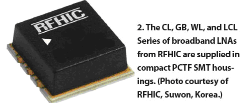 韓國著名射頻微波模塊廠商RFHIC公司,已經(jīng)開始使用PCTF技術(shù)生產(chǎn)其低噪聲放大器、增益模塊、寬帶低噪聲放大器(包括其CL、GB、WL、LCL系列產(chǎn)品)(圖2)。這些產(chǎn)品體積小(10.16×10.16X 4 mm)、價格低適于大批量生產(chǎn)。得益于PCTF技術(shù)的散熱特性和可靠性,該公司的寬帶低噪聲放大器產(chǎn)品能提供有益的高增益、低噪聲性能。對于這些應(yīng)用,PCTF技術(shù)具有承受高溫、散熱性好、易于制造以及可靠性高等優(yōu)點。