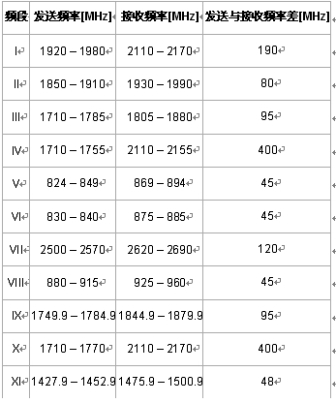 表1:當(dāng)前手機(jī)的使用頻帶