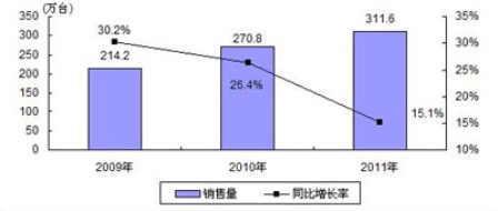 圖2 2009-2011年中國PND市場銷售量及增長預(yù)測