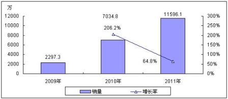 圖1 2009-2011年中國3G手機銷量預(yù)測