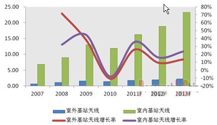 • 2011年中國室外基站天線市場容量同比增長26%