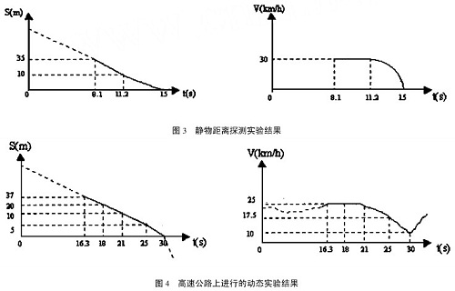 為了評價汽車紅外防撞系統的性能,包括探測障礙物距和相對速度的性能,采用靜物距離探測和在高速公路上行駛時動態探測兩種試驗。