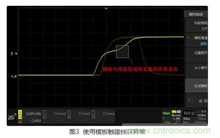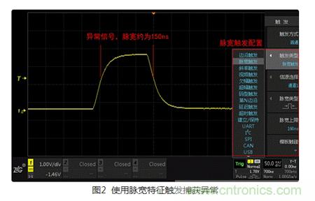 通過Step1,可以大概了解到異常信號的特性,將其特有的條件視為觸發(fā)條件,利用觸發(fā)可快速的捕獲異常信號。ZDS2000系列示波器免費標(biāo)配了多種“觸發(fā)類型”,其中包括11種基礎(chǔ)觸發(fā),21種協(xié)議觸發(fā)。另外,用戶還可根據(jù)波形的形狀特性,使用“模板觸發(fā)”,讓觸發(fā)更加隨心所欲。