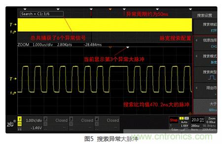 ZDS2000示波器提供了觸發(fā)、測量、搜索、FFT等多種強大功能,但異常信號的不確定性非常大,實際應(yīng)用中,還是應(yīng)視具體情況,靈活組合運用,才能最大程度的提高工作效率。