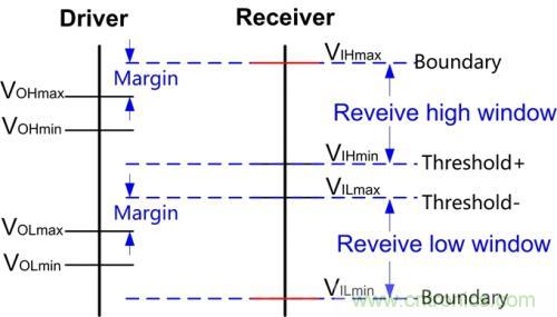 當(dāng)Driver的VOH范圍全部落入Receiver的VIH窗口之內(nèi),Driver的VOL范圍全部落入Receiver的VIL窗口之內(nèi)時,可以保證Receiver可以正確接收Driver的輸出,否則會有潛在的互連不正確甚至損壞器件的可能。