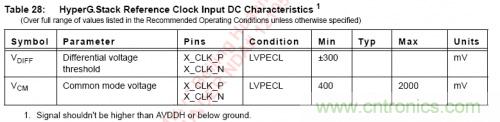 如某器件的某輸入口工作在LVPECL模式下。其指標(biāo)如下(AVDDH=2.5V):