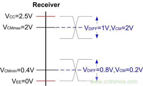 滿足以上條件的差分信號都可以被正確接收。可以注意到,如果共模信號被端接到VBB =VCC-1.3V,接受窗口最大。