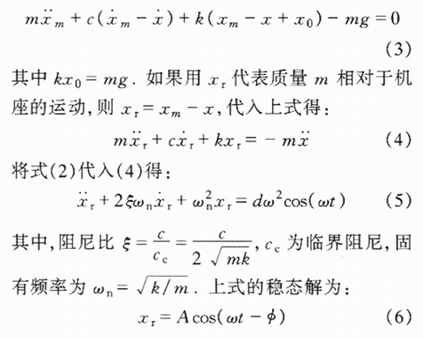 式中,ω為振動(dòng)的角頻率,d為振動(dòng)的幅值.由牛頓定律,該振動(dòng)系統(tǒng)的微分方程可寫(xiě)為: